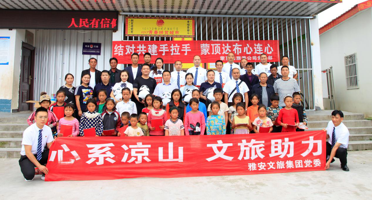 2019年7月6日,雅安文旅集團(tuán)黨委副書記、工會(huì)主席殷麗華帶隊(duì),雅安文旅集團(tuán)副總經(jīng)理、蒙頂山旅游公司黨支部書記張京和支部全體黨員,赴國家深度貧困縣涼山州越西縣申果鄉(xiāng)達(dá)布村開展扶貧慰問活動(dòng)。 一是慰問貧困學(xué)生。涼山州越西縣是國家深度貧困縣,申果鄉(xiāng)達(dá)布村位于大涼山深處,海拔2800米,該村有村民197戶,其中建檔立卡貧困戶76戶。  文旅集團(tuán)、蒙頂山旅游公司通過一周的籌備,組織廣大職工捐款、捐物,累計(jì)捐贈(zèng)青少年讀物245本,并購買10000余元文具、體育器材、生活用品等物資。歷時(shí)7小時(shí),送抵越西縣申果鄉(xiāng)達(dá)...